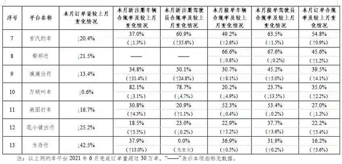 原标题:交通部发布6月网约车行业情况:有平台订单合规率不达两成