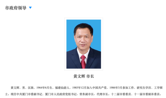 如今,在厦门市市长空缺了1年之后,黄文辉成为新一任厦门市市长。
