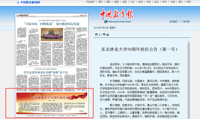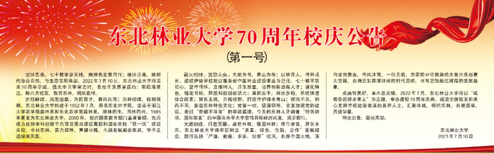 东北林业大学70周年校庆公告