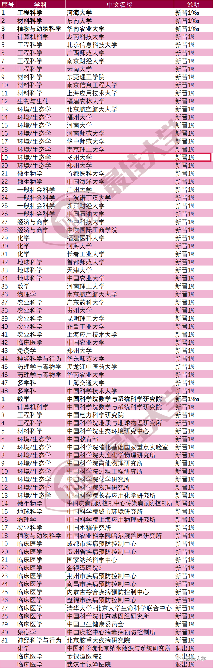 总数10个!全国第32位!我校ESI全球前1%又增1个学科!
