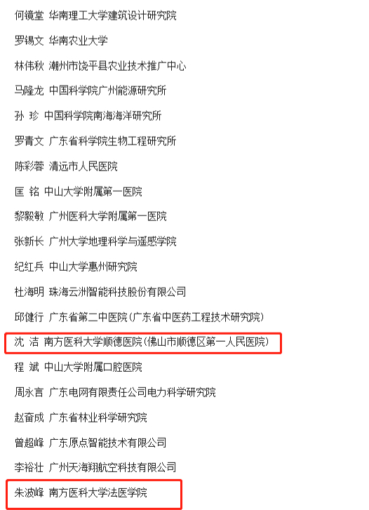 我校2人入选,分别是南方医科大学顺德医院的沈洁,南方医科大学法医学院的朱波峰。