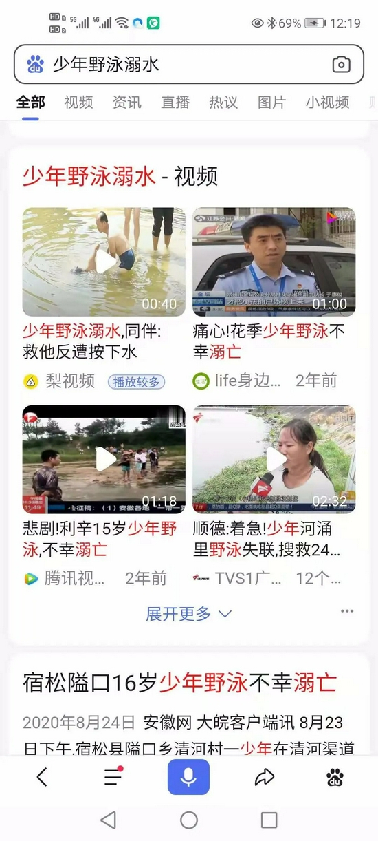 搜索“未成年人野泳溺水”条目之多