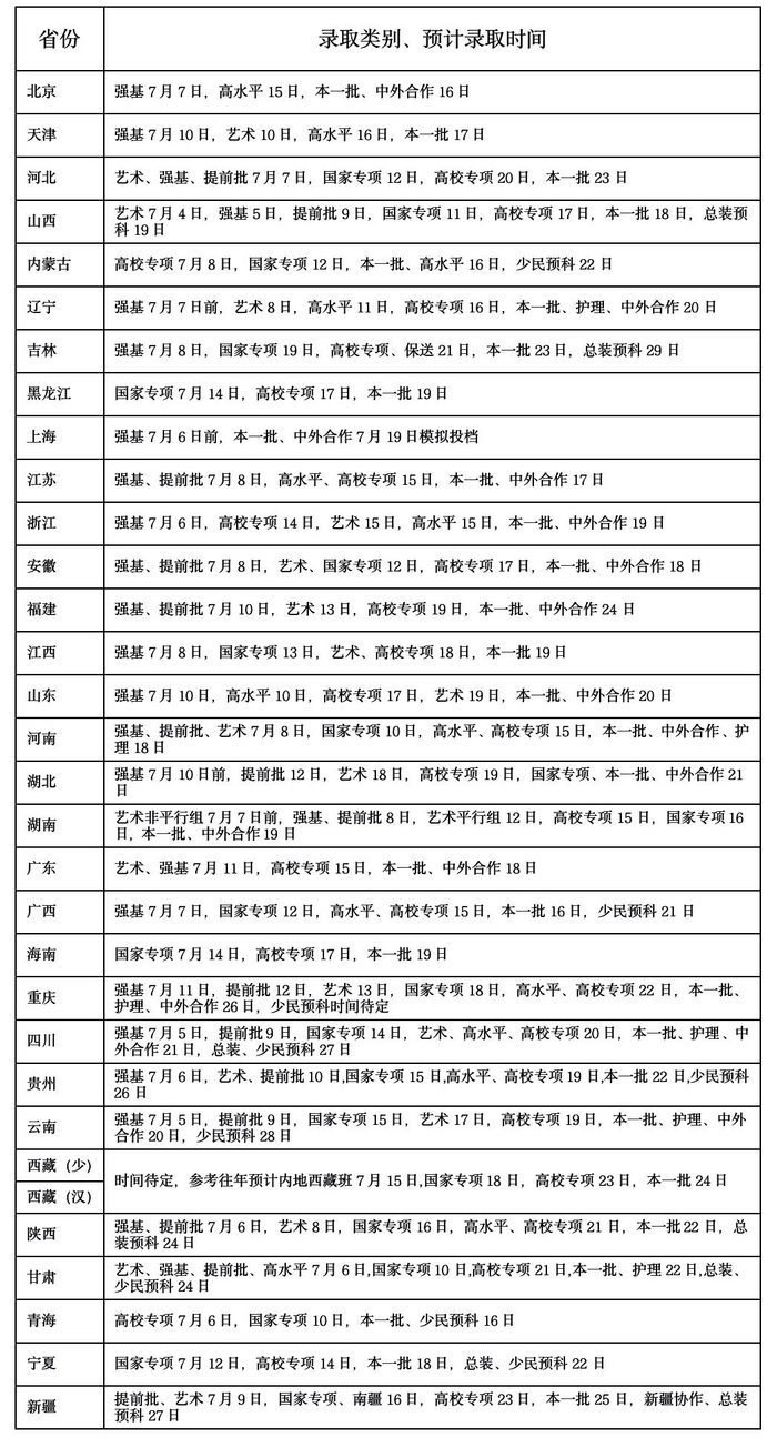 川大各省录取时间是怎么安排的?