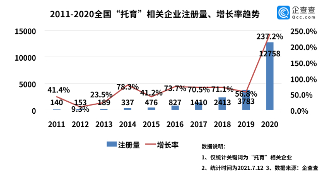 2020年新增托育相关企业1。2万余家,同比增长237%