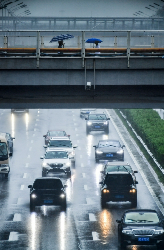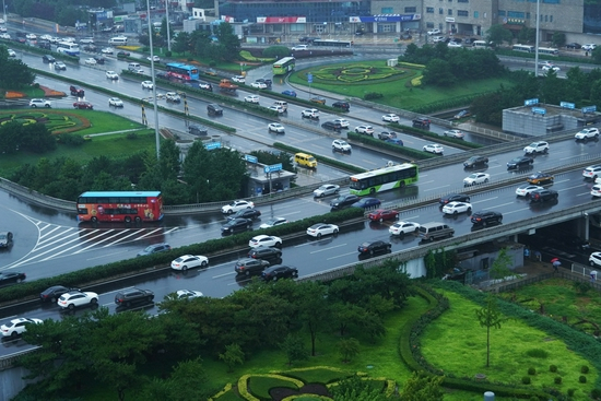 7月12日,北京,由于降雨和市民响应号召改乘公共交通,平时经常陷入堵车的莲花桥路段,早高峰时明显畅通。