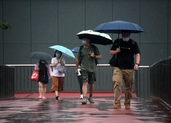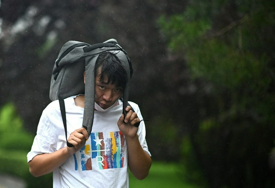 7月12日,北京,持续大雨中,民众冒雨出行。
