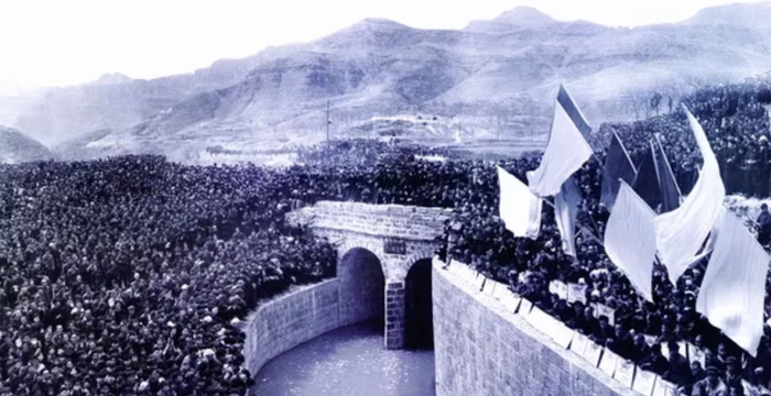 上世纪50年代,因恶劣的气候和地质条件,河南安阳林县“吃水贵如油、十年九不收”,直到红旗渠的诞生,使林县发生了翻天覆地的变化。红旗渠修建历时近十年,全长1500公里,所经之处绝壁穿石、翻山越岭,被誉为世界奇迹!彰显了中华民族“自力更生、艰苦创业、团结协作、无私奉献”的精神,亦即红旗渠精神。为修建红旗渠,30万干部群众前仆后继、劈山修渠,铸就了“人工天河”的伟大工程,涌现了一大批“当代愚公”。