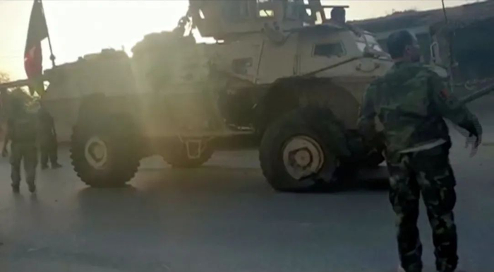 当地时间2021年7月7日,阿富汗昆都士,坦克的轮胎受损。据报道,随着美国从阿富汗撤军进程进入尾声,塔利班向阿富汗政府部队开始发动大规模攻势。