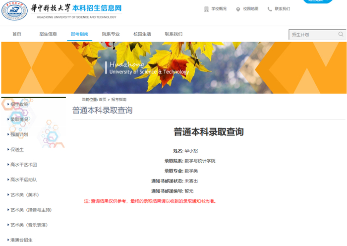 (1)登录“华中科技大学本科招生信息网”