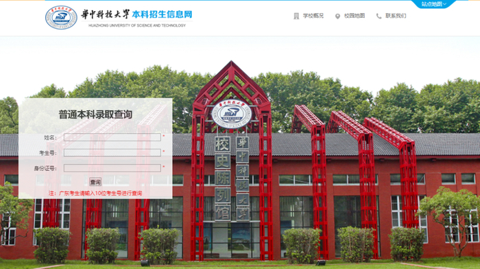 登录“华中科技大学本科招生信息网”