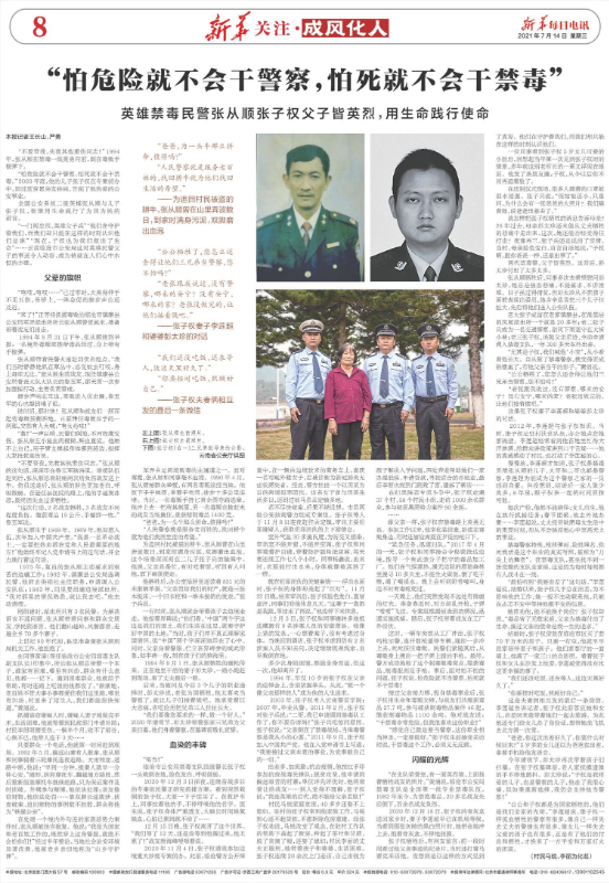 原标题:用生命践行使命!《新华每日电讯》整版聚焦云南英雄禁毒民警张从顺、张子权父子
