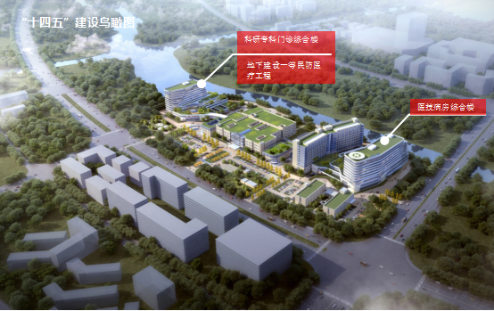 主要建设内容为新建医疗综合楼、科教综合楼及相关配套设施,新建总建筑面积约13.6万平方米。