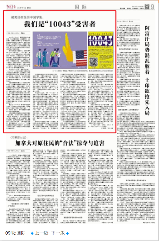 美方拒签这批中国留学生,依据的是所谓“10043号总统令”。“10043号令”是2020年5月29日由美国时任总统特朗普签署的一项总统令。依据该总统令,美方“暂停和限制”与中国军方有关的学生和研究人员进入美国学习或开展研究。