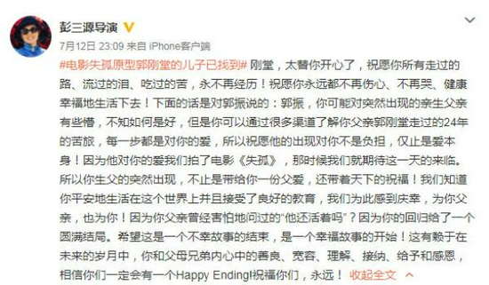 “找到了,就是最好的结局。”《失孤》导演彭三源说。