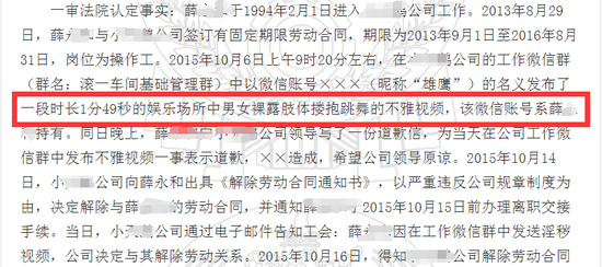 一审法院:薛某某发布不雅视频的行为系单次、偶发行为,情节显著轻微,也不干扰了他人正常生活,公司解雇不当