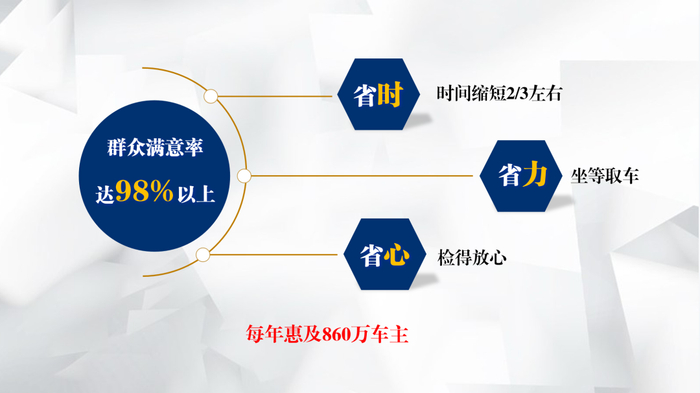 今年6月底,既定改革任务已高质量完成。改革后的检测站实现环境和服务质量大提升,达到了环境更舒心、流程更省心、服务更贴心、管理更精心、体验更安心的“五心”改革目标,私家车平均检测时间缩短2/3左右,每年惠及860万车主,“浙里办”APP群众“好评率”达98%以上。