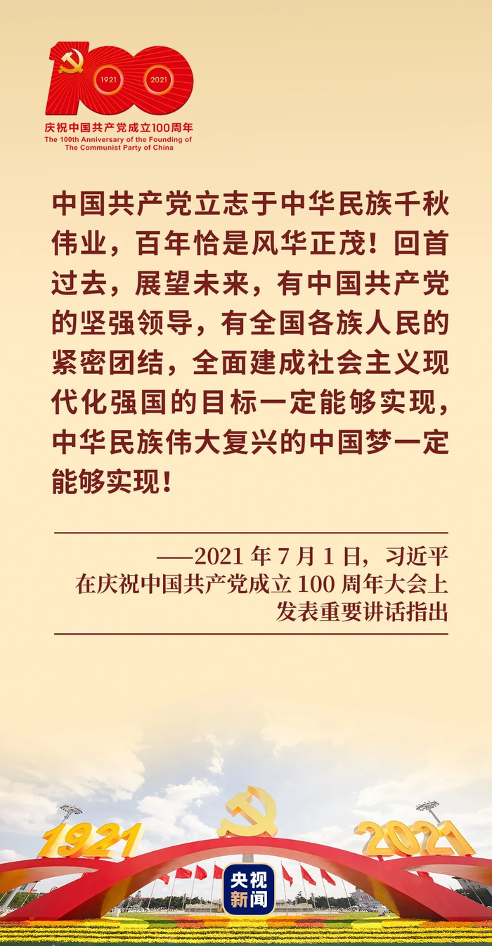 2021年7月1日,习近平总书记在庆祝中国共产党成立100周年大会上发表重要讲话。