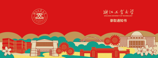 通知书上方,学校的标志建筑图书馆矗立,“妙脆角”散发着知识的光芒,引领学子勇攀学业的高峰,天边的白云幻化成学校英文简称ZUCC中“CC”的走向,预祝学子们圆满完成学业,走向世界。