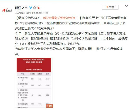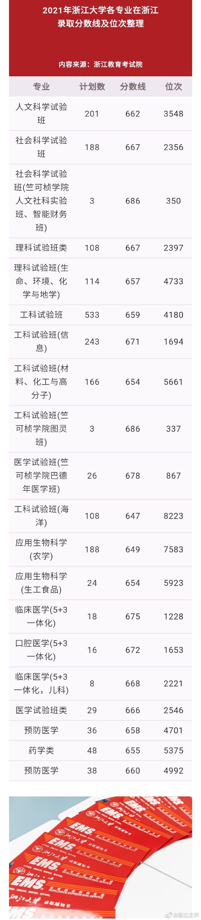 今年浙江大学各专业分数线及位次整理如下,戳图来看!(浙江之声记者解梓笛)