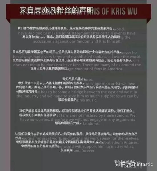 ·吴亦凡粉丝在外国社交平台发声,称吴亦凡有大量粉丝。图自网络。