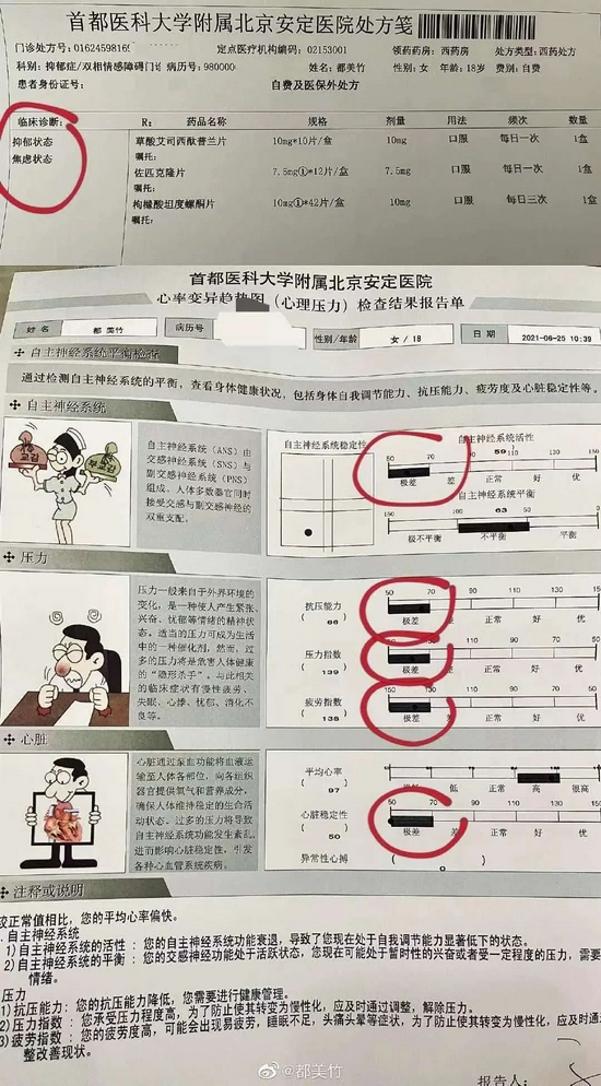 ·都美竹说,与吴亦凡“分手”后出现抑郁。图自都美竹微博。