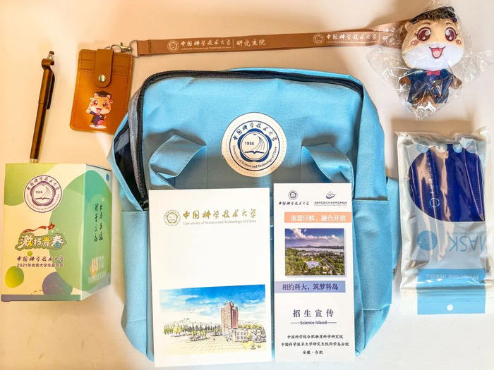 此次夏令营,中国科大为营员们准备了超级丰厚的夏令营大礼包,内含:中国科大定制书包、夏令营文化衫、定制水杯、科大蓝口罩、孺子牛玩偶钥匙扣、定制卡套、笔记本和签字笔。