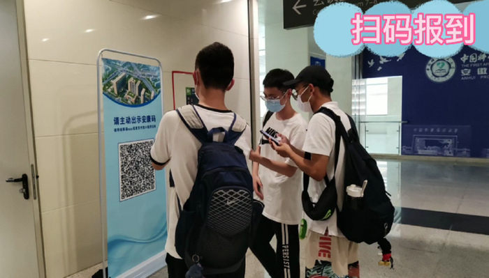 为做好疫情防控工作,我校在每个报到入口设置体温检测点,安排志愿者对所有来报到的营员进行体温检测和扫描安康码。