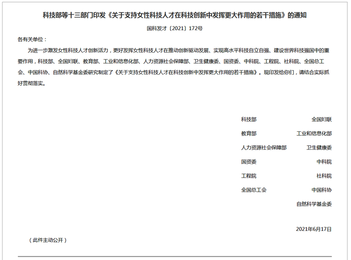 原标题:13部门发文:大力支持女性科技人才创新创业