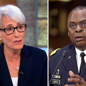 美国常务副国务卿温迪·谢尔曼(左)美国国防部长劳埃德·奥斯汀(右)
