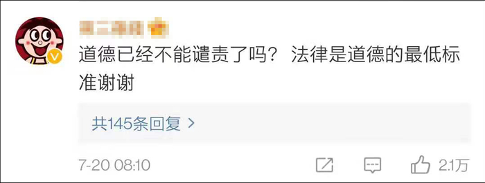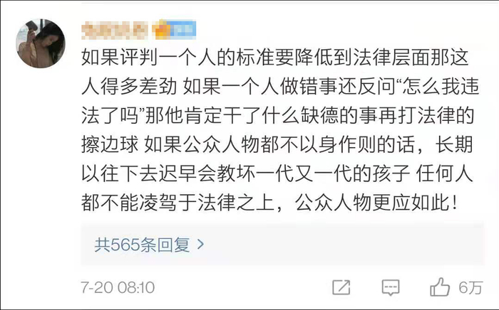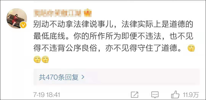 也有人觉得法律是道德的最低标准,在道德层面也该谴责吴亦凡。