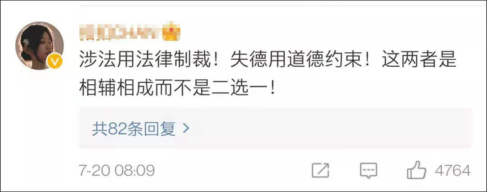 有网友表示,法律和道德二者并不矛盾,“涉法用法律制裁,失德用道德约束。”