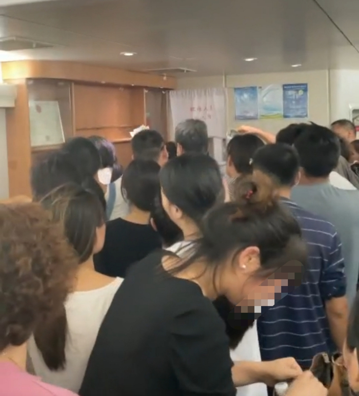 余女士发来的视频画面显示,列车餐车的过道上排队人数众多,场面较为拥挤,有嘈杂的讨论声。
