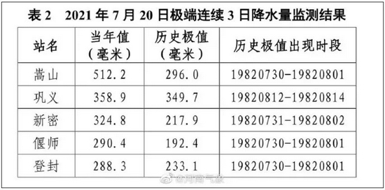19日20时~20日20时,单日降雨量552.5mm。17日20时到20日20时,三天的过程降雨量617.1mm。其中小时降水,单日降水均已突破自1951年郑州建站以来60年的历史记录。