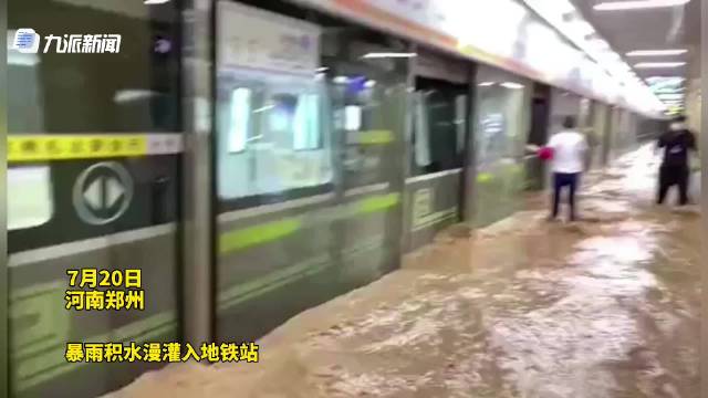 郑州暴雨积水灌入地铁站,郑州地铁:站外积水严重,站内很多乘客滞留