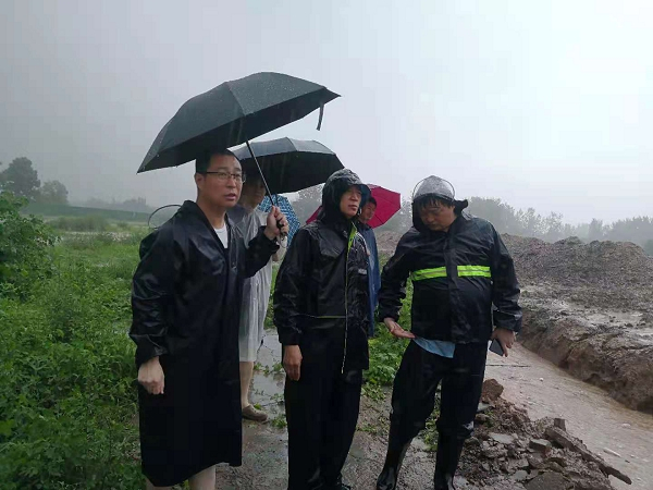 连日来,河南省郑州市遭遇持续强降雨,严重汛情给人民群众生命财产安全造成重大威胁。全市纪检监察干部闻“汛”而动,积极投身防汛救灾一线。图为该市纪委监委第二监督检查室干部在管城区王垌村察看防汛排水情况,督导疏排积水、加固大堤。(郑州市纪委监委供图)