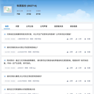 近年来,河南省各行业均涌现一批本地的上市公司。据同花顺数据,河南板块个股共91只,其中市值最大的三家分别为牧原股份、洛阳钼业和双汇发展。部分投资者在深交所互动易和上交所e互动等互动平台上询问河南本地及业务相关公司是否受到影响。