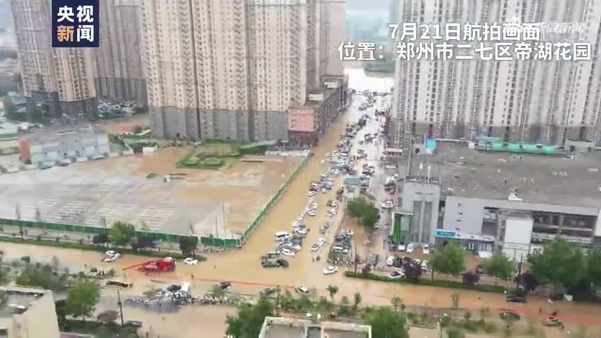独家航拍:暴雨后郑州多处积水,水位最高达1.5米