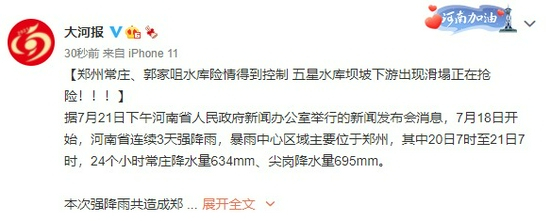 原标题:郑州常庄、郭家咀水库险情得到控制 五星水库坝坡下游出现滑塌正在抢险!!!