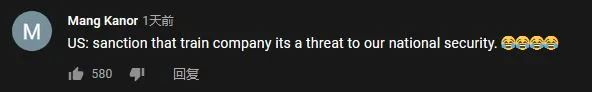 相对推特上的评论,YouTube 平台上的评论更为“辛辣”。“美国:制裁那家列车公司,因为它会威胁我们的国家安全。”