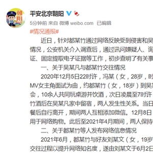 7月22日,北京朝阳警方发布了针对都美竹通过网络反映受到侵害和吴亦凡一方报警称被敲诈勒索的情况进行了通报。来源:北京朝阳警方官方微博