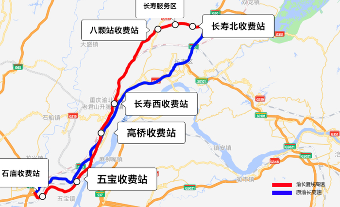 两江新区至长寿区车程缩短