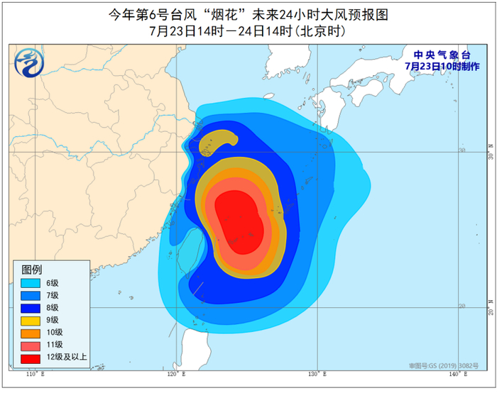 受第6号台风“烟花”(强台风级)影响,预计今天夜间到明天白天:嘉兴沿岸将出现150-250厘米的风暴增水,舟山、宁波、台州沿岸将出现120-200厘米的风暴增水,温州沿岸将出现80-150厘米的风暴增水。风暴潮预警级别为红色。近海海域海浪预警级别为橙色;近岸海域海浪预警级别为红色。