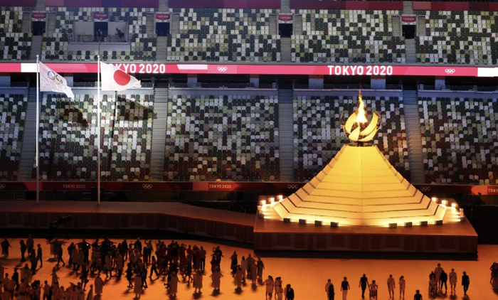 在经过121天,行程超过2000公里的传递,奥运会圣火抵达开幕式主体育场。在一连串具有象征意义的传递后,火炬手最后来到日本网球运动员、大满贯得主大坂直美手中,在万众瞩目中,大坂直美带着圣火走上富士山造型的主火炬台,点燃了象征太阳的圆球,这也意味着东京奥运主火炬被点燃,奥运开幕式来到了高潮,也意味着东京奥运盛会开启。