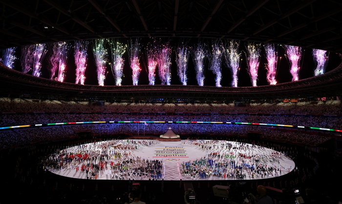 随着倒计时结束,在绚烂的烟花中,东京奥运会正式拉开帷幕。