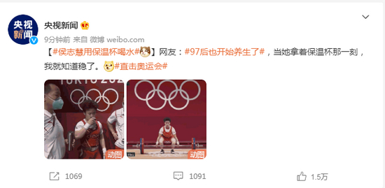 原标题:侯志慧用保温杯喝水