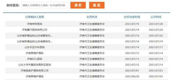 据济南市人民政府官网显示,7月以来,已有6家医疗机构因病历书写问题被济南市卫健委处罚。其中包括济南神安医院、山东手足外科医院、山东大学齐鲁医院高新区医院、济南妇儿医院等。