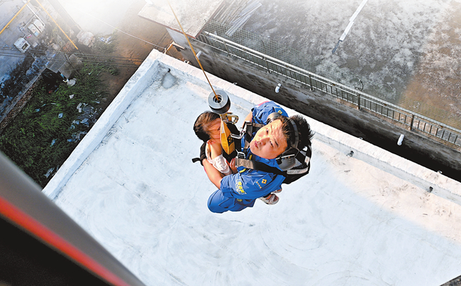 7月25日,山西成功通用航空股份有限公司派出直升机,前往卫辉市上乐村镇小河口村解救被困群众。记者 宋亚猛 摄