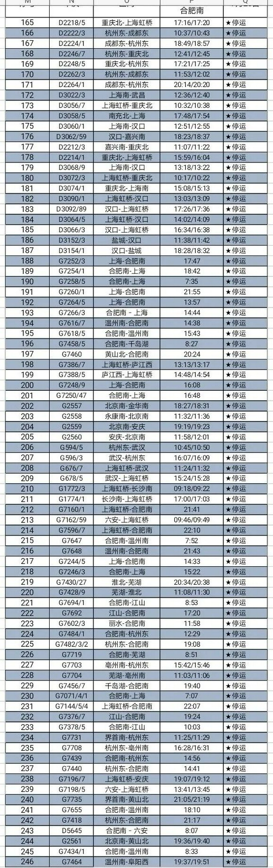 合肥站部分停运列车