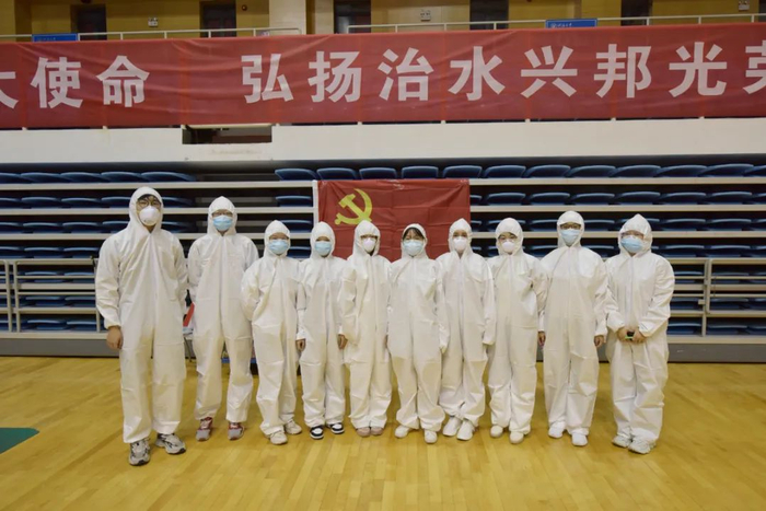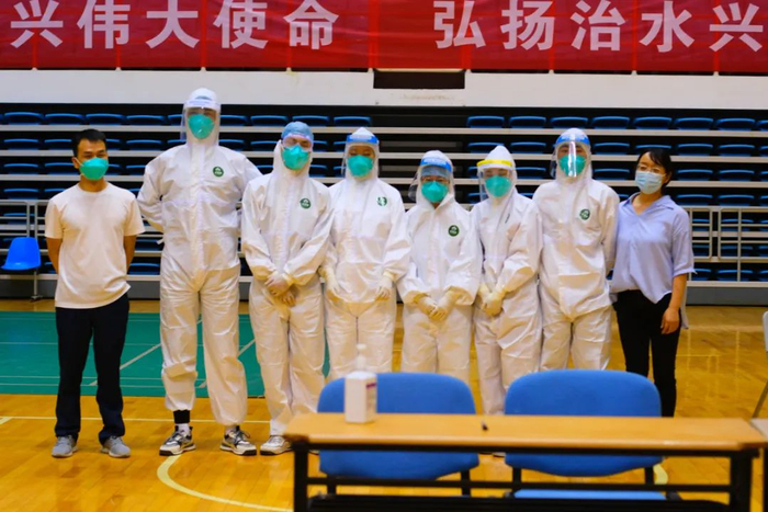 校内党员干部积极报名加入志愿者的行列,许多在家的辅导员也自发来到学校,经过医护人员和学工处工作人员的培训后穿上防护服迅速投入工作,为每一位前来检测的师生员工保驾护航。