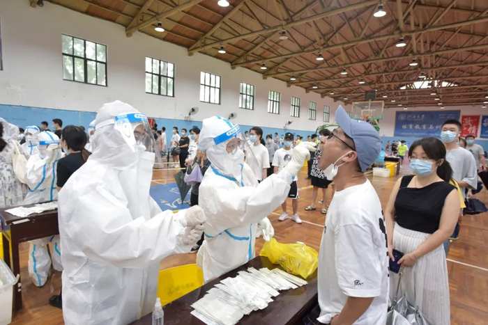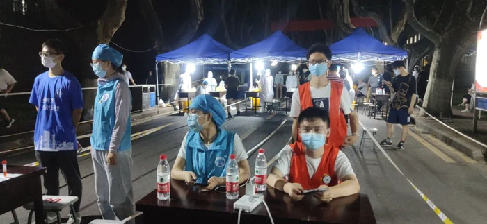 7月24日晚9点,江宁校区第二轮检测开始,在各方的通力合作下,凌晨2点半左右圆满完成了4030人的检测。7月25日下午,西康路校区也圆满完成了3030人的第二轮检测。
